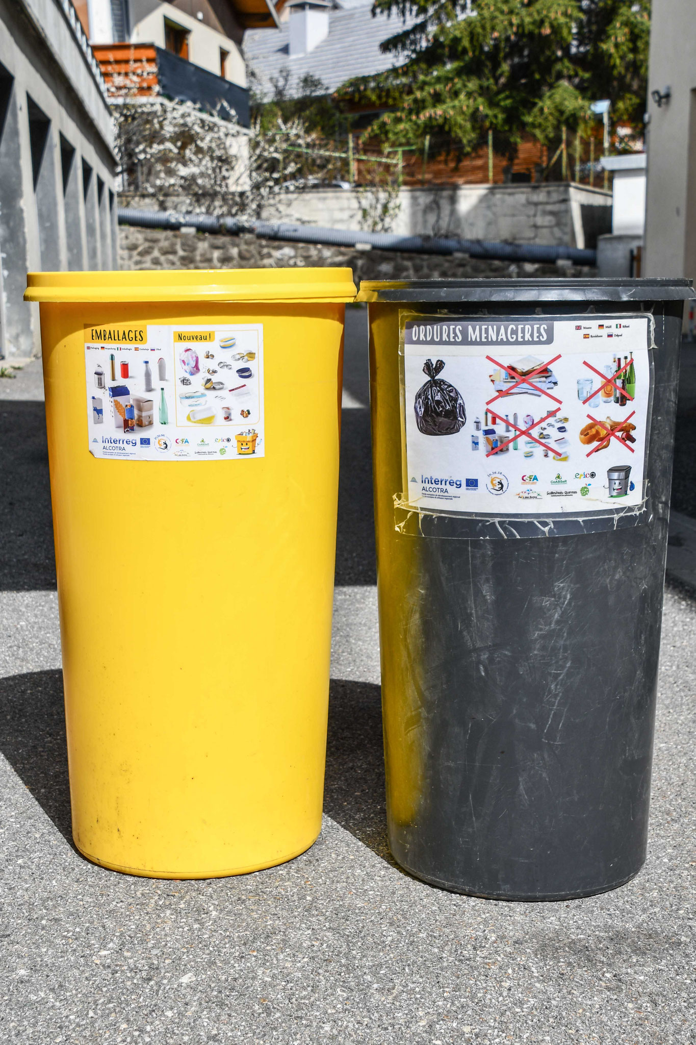 -De bacs pour trois flux de déchets = emballages/déchets alimentaires/ordures ménagères.