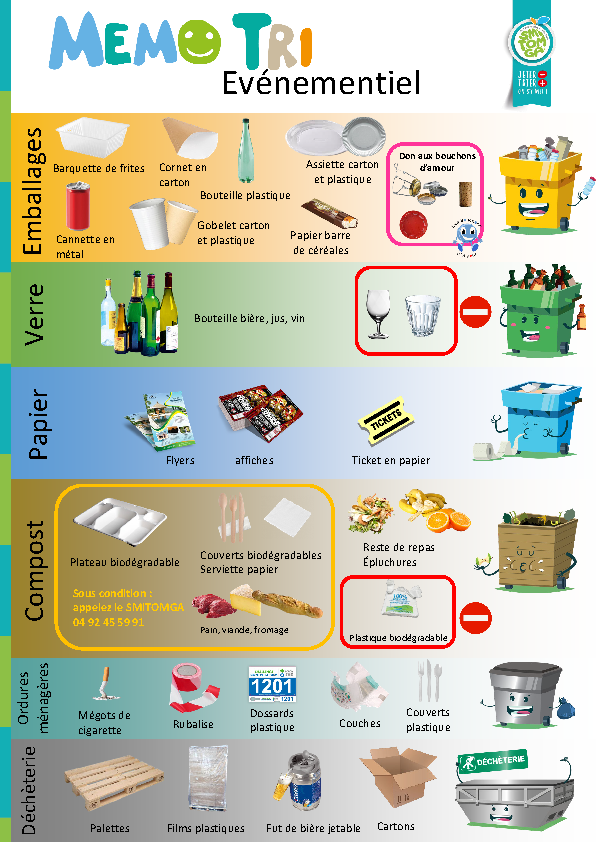 Pour vous accompagner et promouvoir le tri sur votre événement, le SMITOMGA propose aux organisateurs le Mémo tri événementiel.