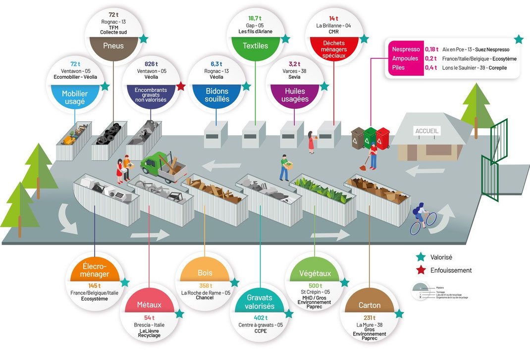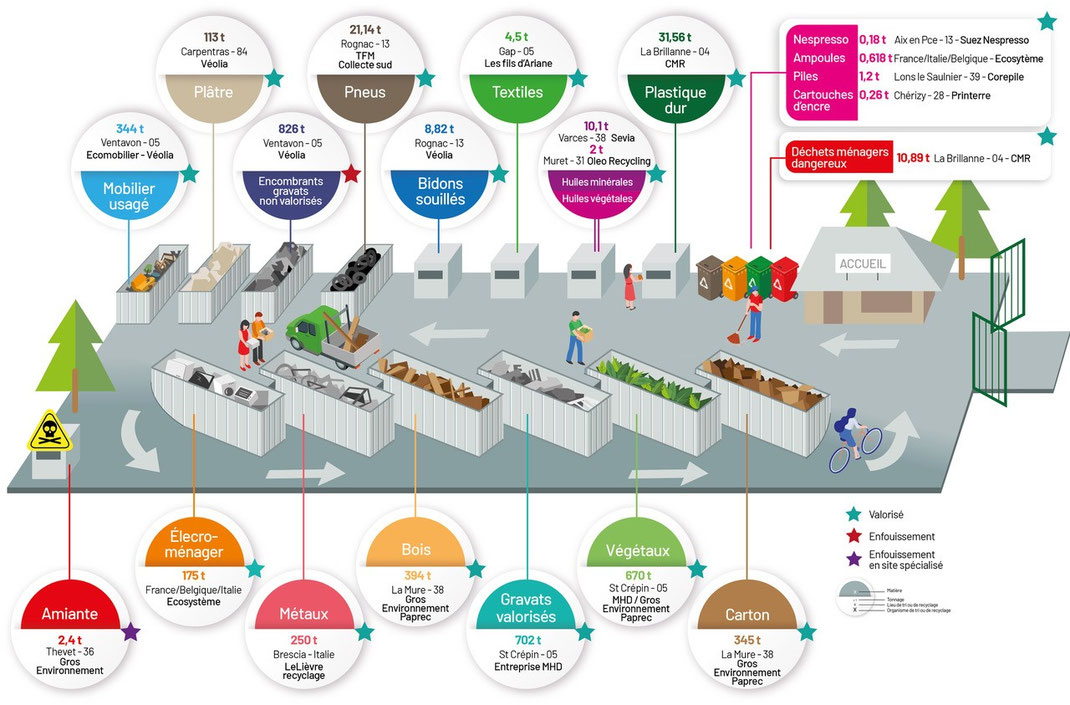 Tonnages et évacuation des déchets de la déchèterie de la Communauté de Communes du Pays des Ecrins*